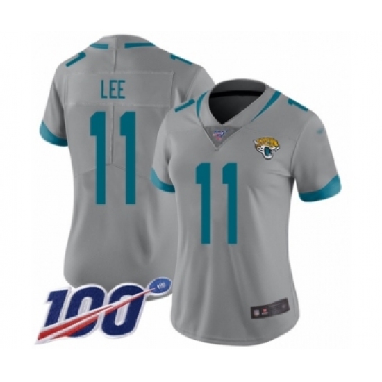 >Women's Jacksonville Jaguars #11 Marqise Lee Silver Inverted Legend Limited 100th Season Football Jersey