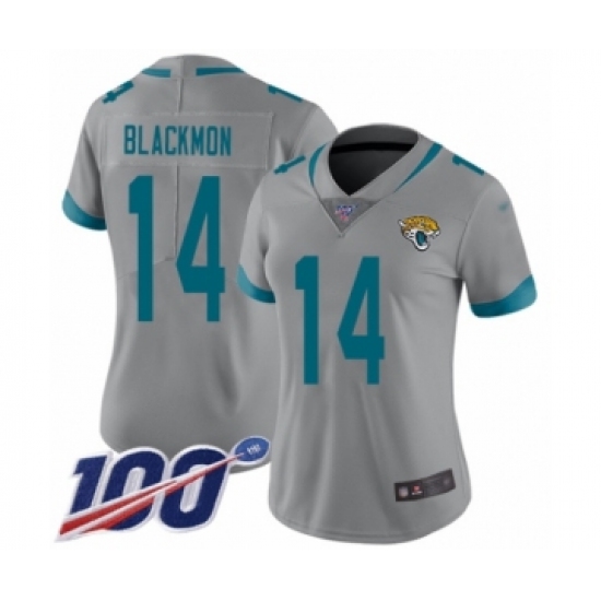 >Women's Jacksonville Jaguars #14 Justin Blackmon Silver Inverted Legend Limited 100th Season Football Jersey