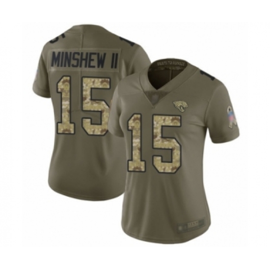 >Women's Jacksonville Jaguars #15 Gardner Minshew II Limited Olive Camo 2017 Salute to Service Football Jersey