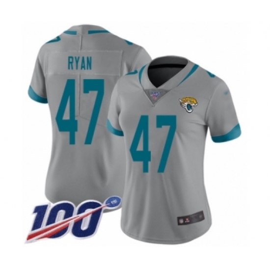 >Women's Jacksonville Jaguars #47 Jake Ryan Silver Inverted Legend Limited 100th Season Football Jersey
