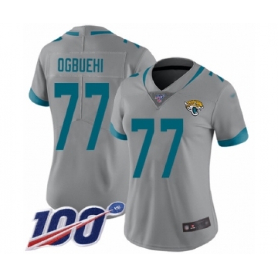 >Women's Jacksonville Jaguars #77 Cedric Ogbuehi Silver Inverted Legend Limited 100th Season Football Jersey