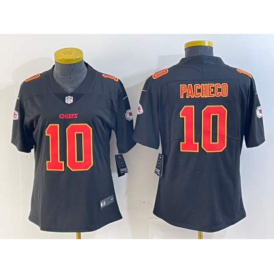 >Women's Kansas City Chiefs #10 Isiah Pacheco Black Fashion Vapor Limited Stitched Jersey
