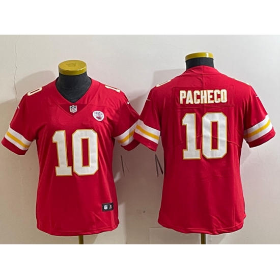 >Women's Kansas City Chiefs #10 Isiah Pacheco Red Vapor Football Stitched Jersey