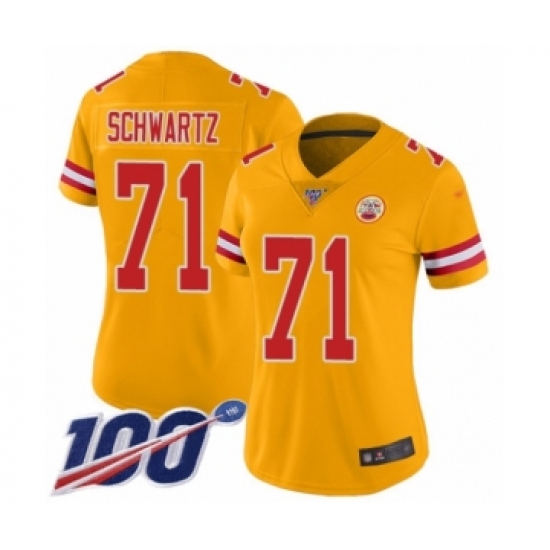 >Women's Kansas City Chiefs #71 Mitchell Schwartz Limited Gold Inverted Legend 100th Season Football Jersey