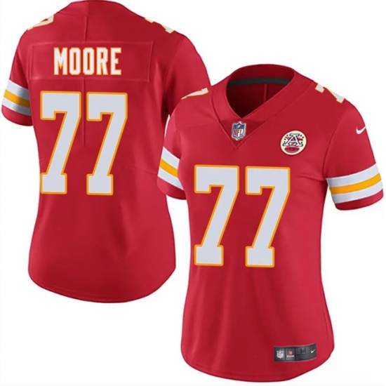 >Women's Kansas City Chiefs #77 Jaylon Moore Red 2025 Vapor Untouchable Limited Stitched Jersey(Run Small)