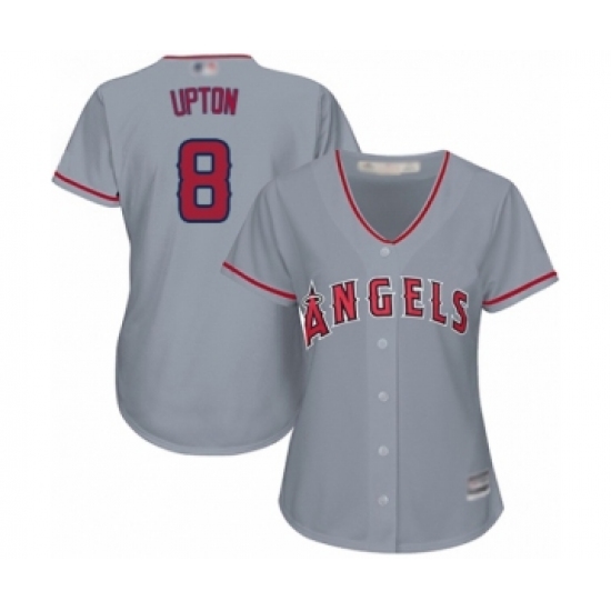 Women's Los Angeles Angels of Anaheim #8 Justin Upton Authentic Grey Road Cool Base Baseball Jersey