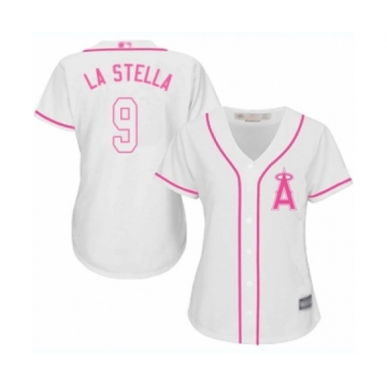 >Women's Los Angeles Angels of Anaheim #9 Tommy La Stella Authentic White Fashion Cool Base Baseball Jersey