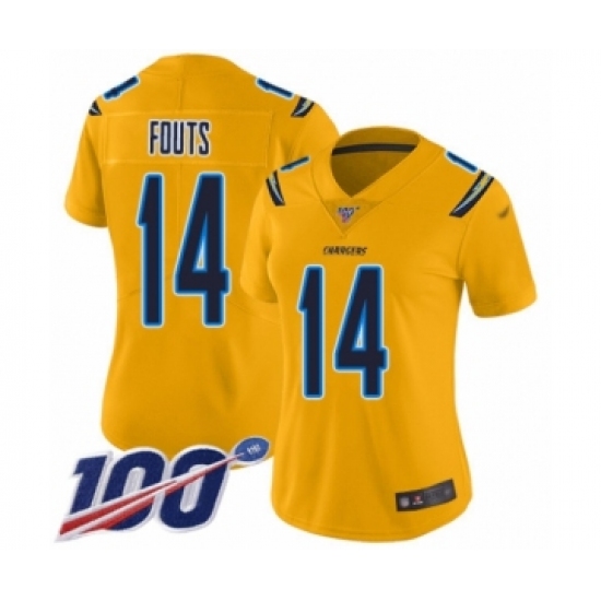 Women's Los Angeles Chargers #14 Dan Fouts Limited Gold Inverted Legend 100th Season Football Jersey
