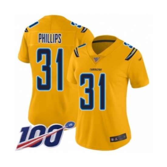 >Women's Los Angeles Chargers #33 Derwin James Limited Gold Inverted Legend 100th Season Football Jersey