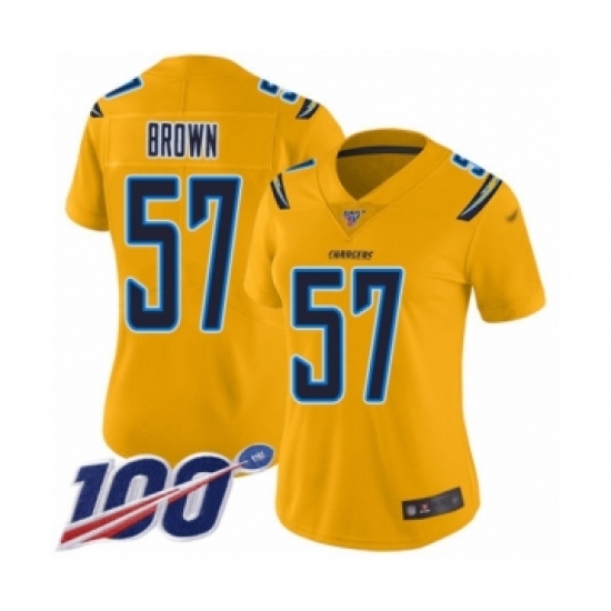 >Women's Los Angeles Chargers #57 Jatavis Brown Limited Gold Inverted Legend 100th Season Football Jersey