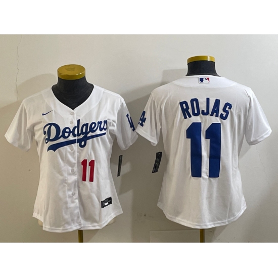 >Women's Los Angeles Dodgers #11 Miguel Rojas Number White Cool Base Stitched Jersey