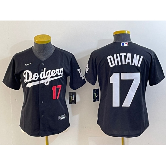 Women's Los Angeles Dodgers #17 Shohei Ohtani Number Black Turn Back The Clock Stitched Cool Base Jerseys