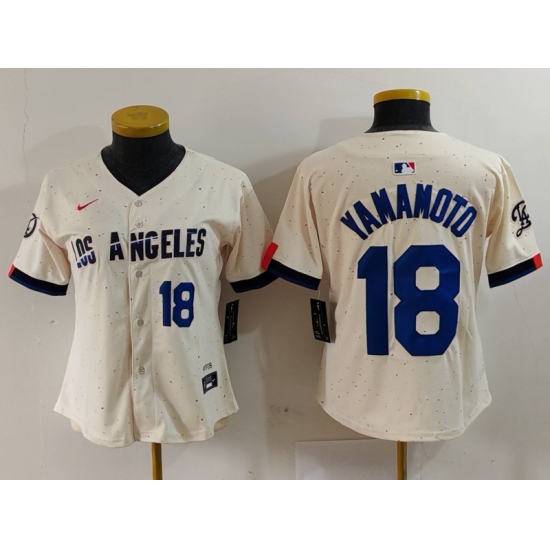 Women's Los Angeles Dodgers #18 Yoshinobu Yamamoto Number Cream 2024 City Connect Limited Stitched Jerseys