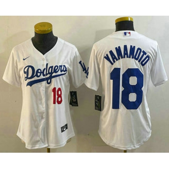 >Women's Los Angeles Dodgers #18 Yoshinobu Yamamoto Number White Stitched Cool Base Nike Jersey