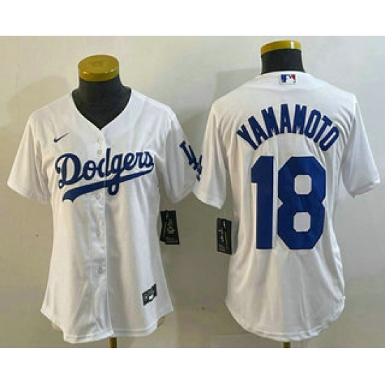 >Women's Los Angeles Dodgers #18 Yoshinobu Yamamoto White Stitched Cool Base Nike Jersey