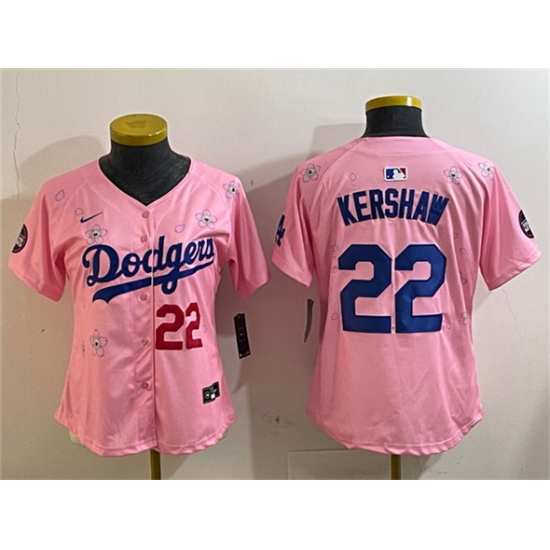 Women's Los Angeles Dodgers #22 Clayton Kershaw Pink 2025 Tokyo Series Limited Stitched Baseball Jersey(Run Small)
