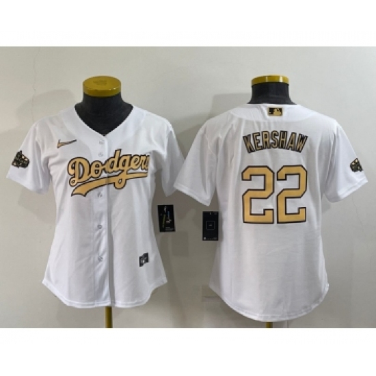Women's Los Angeles Dodgers #22 Clayton Kershaw White 2022 All Star Stitched Cool Base Nike Jersey
