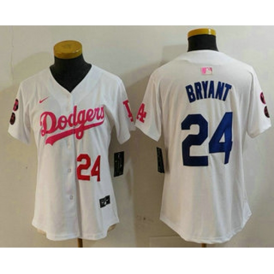 Women's Los Angeles Dodgers #24 Kobe Bryant White Pink With Limited Stitched Jersey