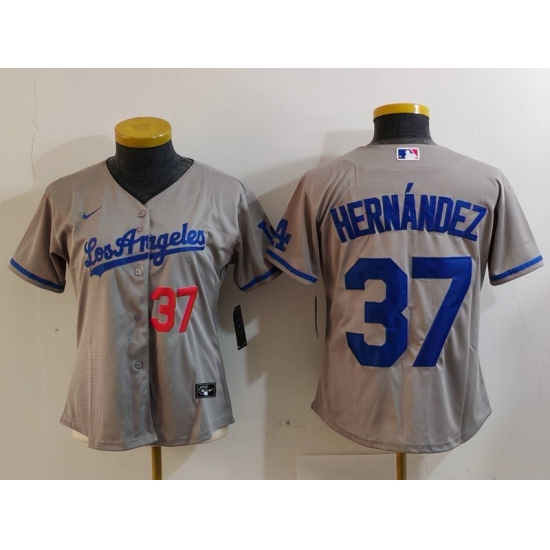 Women's Los Angeles Dodgers #37 Teoscar Hernandez Number Grey With Los Cool Base Stitched Jersey