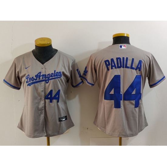 >Women's Los Angeles Dodgers #44 Vicente Padilla Number Grey With los Cool Base Stitched Jerseys