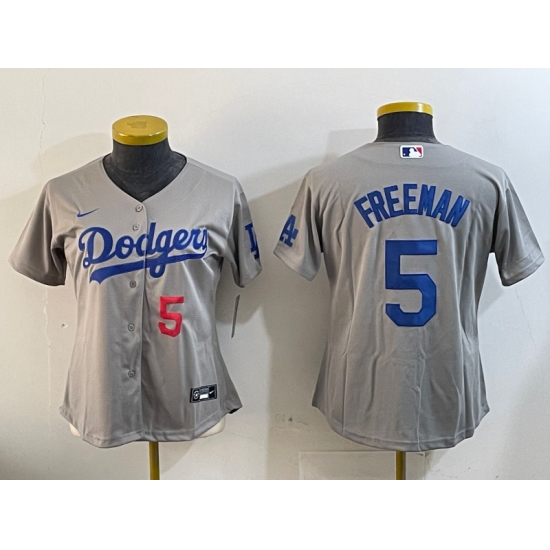 Women's Los Angeles Dodgers #5 Freddie Freeman Grey Cool Base Stitched Jersey
