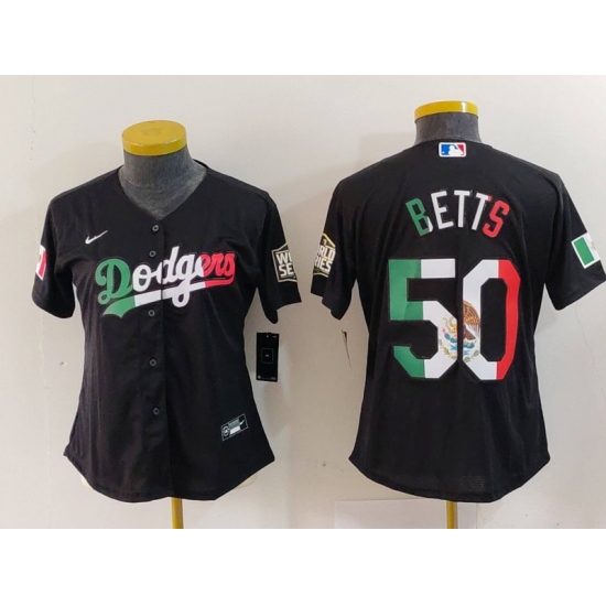 Women's Los Angeles Dodgers #50 Mookie Betts Mexico Black Cool Base Stitched Jersey