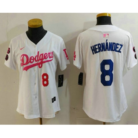 Women's Los Angeles Dodgers #8 Kike Hernandez Number White Pink With Limited Stitched Jersey