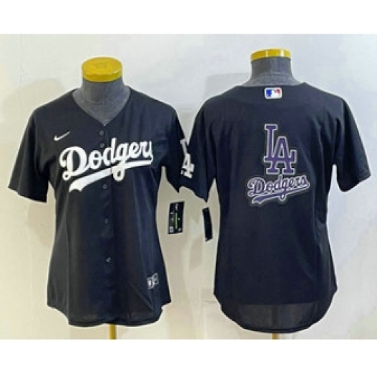 Women's Los Angeles Dodgers Big Logo Black MLB Cool Base Nike Jerseys