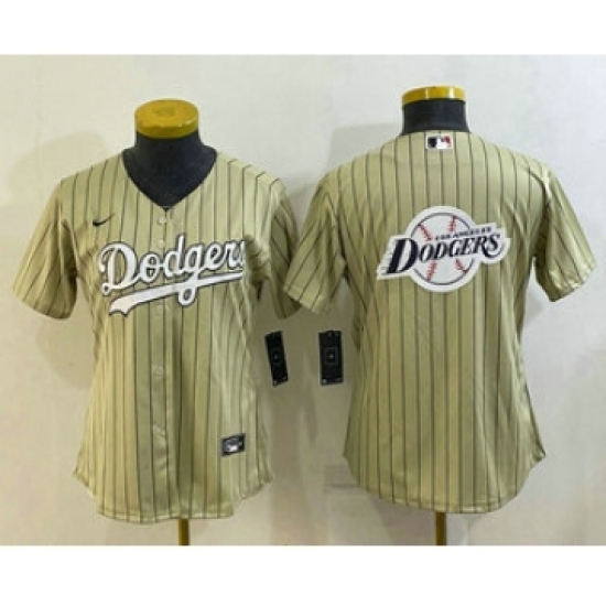 >Women's Los Angeles Dodgers Big Logo Number Cream Pinstripe Stitched MLB Cool Base Nike Jersey