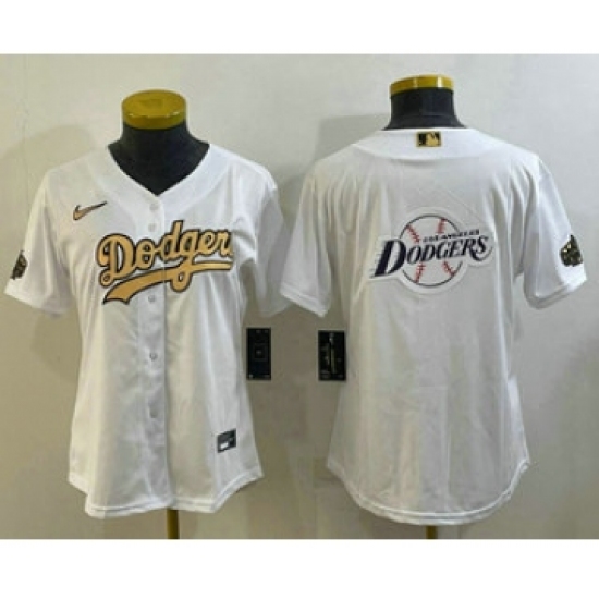 Women's Los Angeles Dodgers Big Logo White Gold Championship Stitched MLB Cool Base Nike Jersey