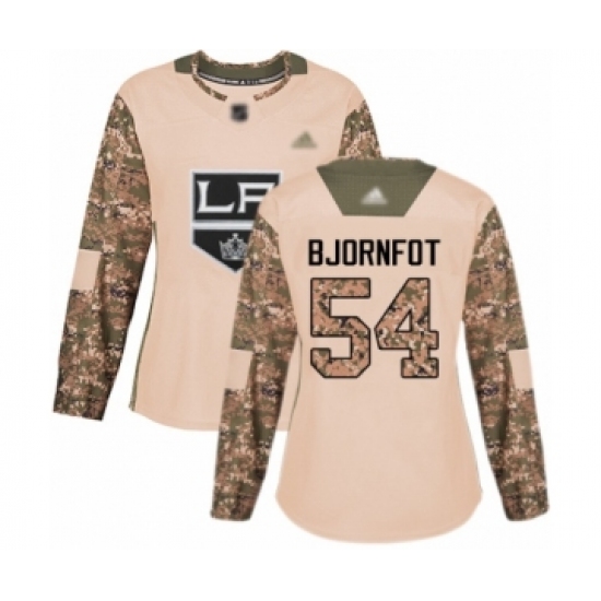 >Women's Los Angeles Kings #54 Tobias Bjornfot Authentic Camo Veterans Day Practice Hockey Jersey