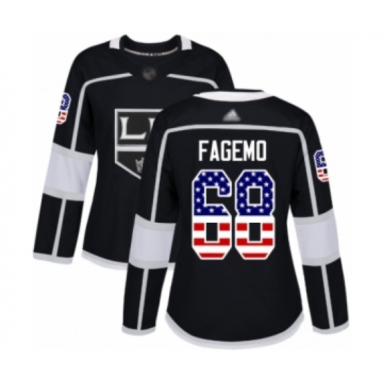 Women's Los Angeles Kings #68 Samuel Fagemo Authentic Black USA Flag Fashion Hockey Jersey