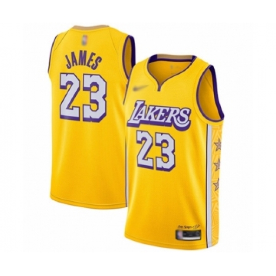 >Women's Los Angeles Lakers #23 LeBron James Swingman Gold Basketball Jersey - 2019 20 City Edition