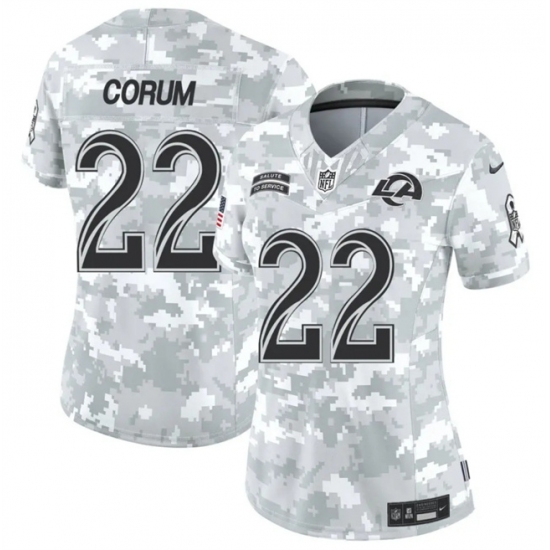 >Women's Los Angeles Rams #22 Blake Corum 2024 F.U.S.E Arctic Camo Salute To Service Limited Stitched Football Jersey(Run Small)