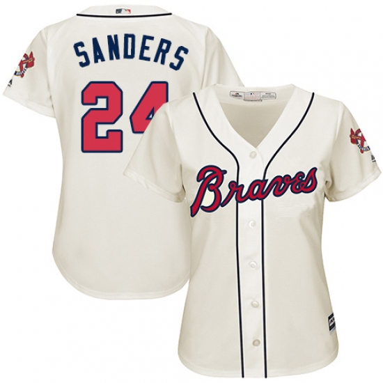 Women's Majestic Atlanta Braves #24 Deion Sanders Replica Cream Alternate 2 Cool Base MLB Jersey