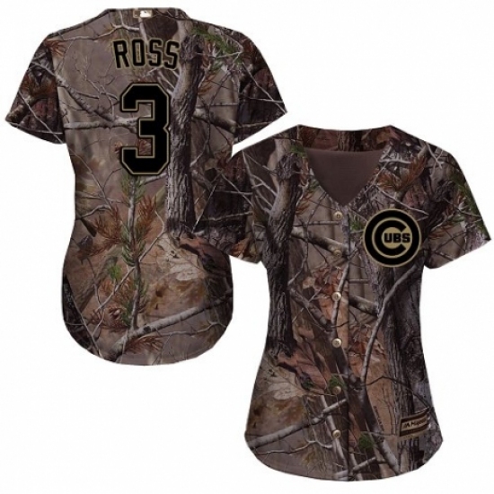 >Women's Majestic Chicago Cubs #3 David Ross Authentic Camo Realtree Collection Flex Base MLB Jersey