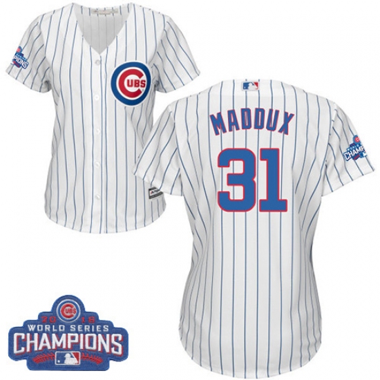 Women's Majestic Chicago Cubs #31 Greg Maddux Authentic White Home 2016 World Series Champions Cool Base MLB Jersey