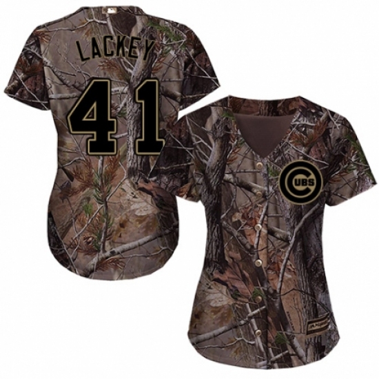 >Women's Majestic Chicago Cubs #41 John Lackey Authentic Camo Realtree Collection Flex Base MLB Jersey