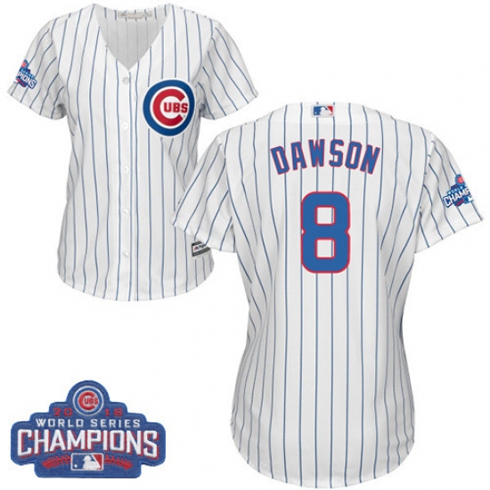 Home>MLB>Chicago Cubs>Andre Dawson>Women's Majestic Chicago Cubs #8 Andre Dawson Authentic White Home 2016 World Series Champions Cool Base MLB Jersey