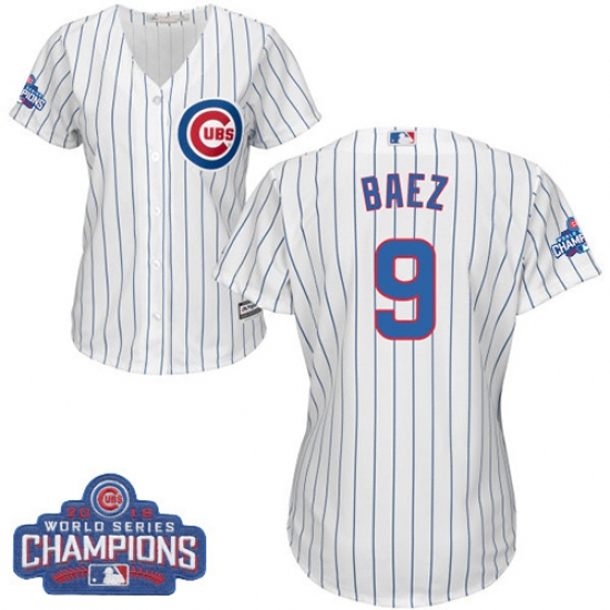 Home>MLB>Chicago Cubs>Javier Baez>Women's Majestic Chicago Cubs #9 Javier Baez Authentic White Home 2016 World Series Champions Cool Base MLB Jersey