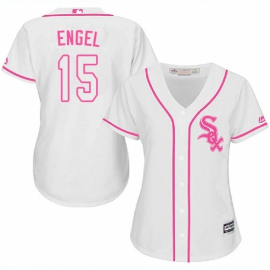 >Women's Majestic Chicago White Sox #15 Adam Engel Replica White Fashion Cool Base MLB Jersey