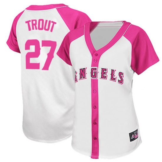 Women's Majestic Los Angeles Angels of Anaheim #27 Mike Trout Authentic White/Pink Splash Fashion MLB Jersey