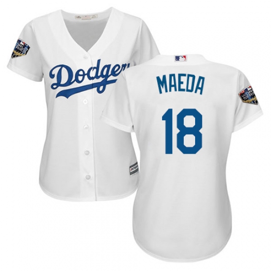 Women's Majestic Los Angeles Dodgers #18 Kenta Maeda Authentic White Home Cool Base 2018 World Series MLB Jersey