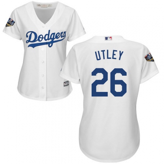 Women's Majestic Los Angeles Dodgers #26 Chase Utley Authentic White Home Cool Base 2018 World Series MLB Jersey