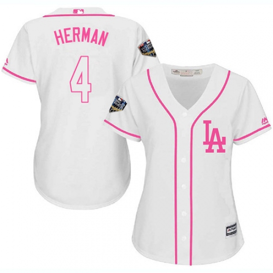 Women's Majestic Los Angeles Dodgers #4 Babe Herman Authentic White Fashion Cool Base 2018 World Series MLB Jersey