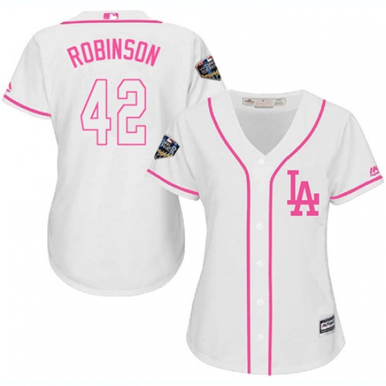 >Women's Majestic Los Angeles Dodgers #42 Jackie Robinson Authentic White Fashion Cool Base 2018 World Series MLB Jersey