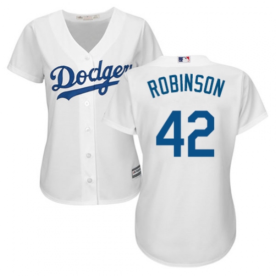 Women's Majestic Los Angeles Dodgers #42 Jackie Robinson Replica White MLB Jersey
