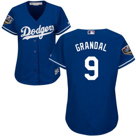 Women's Majestic Los Angeles Dodgers #9 Yasmani Grandal Authentic Royal Blue Alternate Cool Base 2018 World Series MLB Jersey