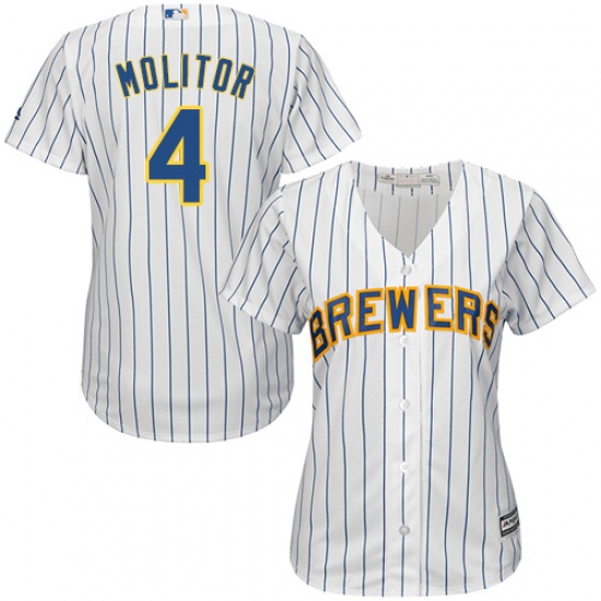 Women's Majestic Milwaukee Brewers #4 Paul Molitor Authentic White Alternate Cool Base MLB Jersey