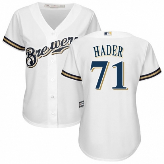 Women's Majestic Milwaukee Brewers #71 Josh Hader Authentic White Alternate Cool Base MLB Jersey